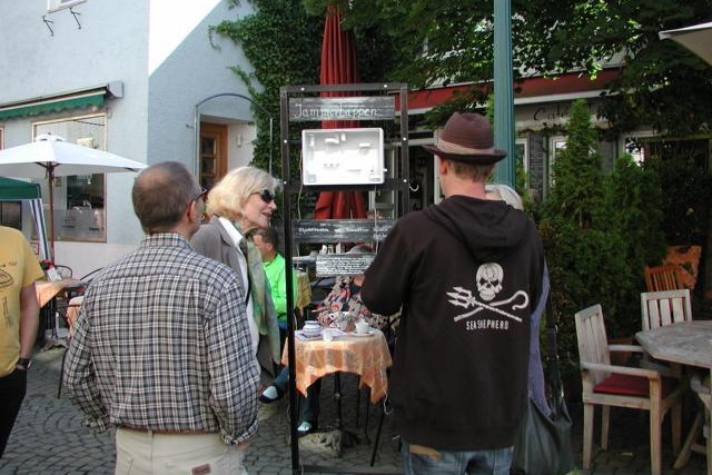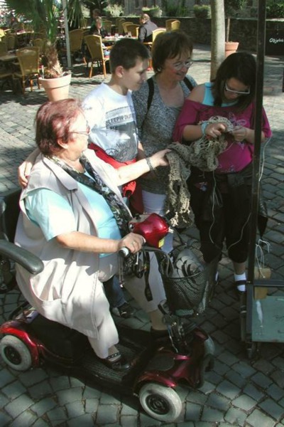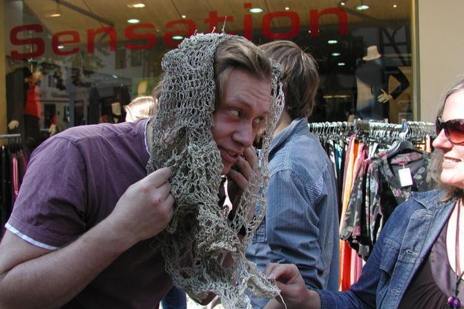 Bisher haben sich eine Vielzahl BesucherInnen an die rote Häkelnadel gewagt, auch Herren taten dies in der Öffentlichkeit. Masche für Masche! Interessante Begeben-heiten und Gespräche kamen so zustande, die schnell persönliche und gesellschaft-kritische Aspekte zu Tage brachten.