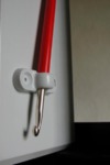 Sie sind so angebracht, dass die durchlaufende Kordel nachgezogen werden kann. Das Jammermaterial, in Form eines EndlosKordelKnäuels, ist in einem auf dem Boden gestellten Einmachglas untergebracht.